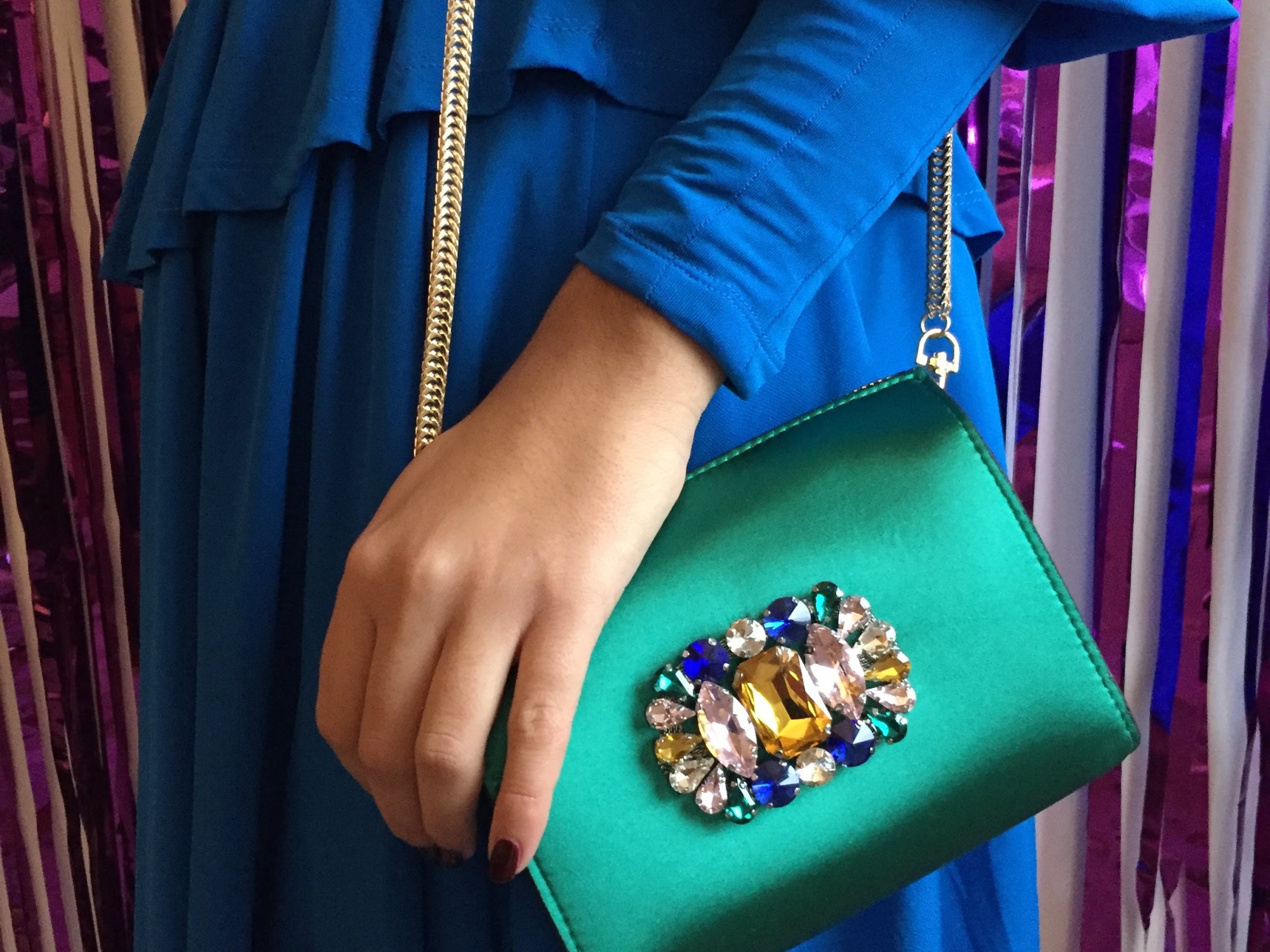 Well a modern girl only needs her iPhone and lippy right? Just because this bag is small doesn’t mean that it doesn’t pack a major fashion punch. In eye-catching emerald green and decorated with dazzling jewels, this is a great party bag for all of the festive fun ahead.